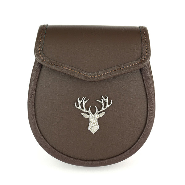A simple design with plain lid but sporting a traditional stag badge in the center of the sporran body.