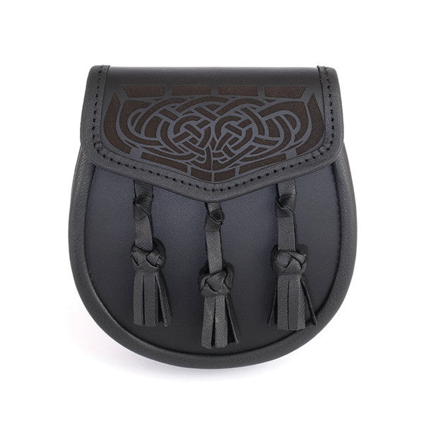 Cutting edge laser etching technology has been used to create this intricate celtic design of this triple knotted tassel sporran.