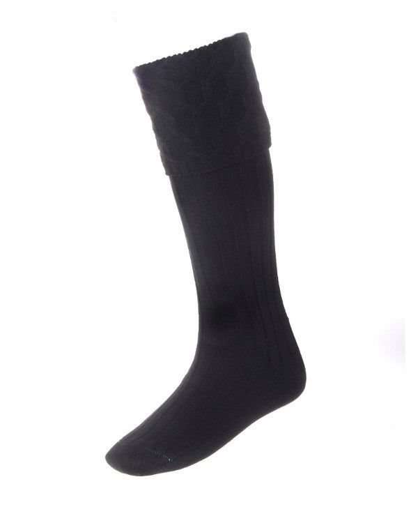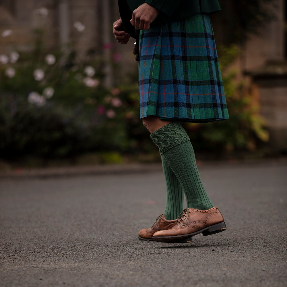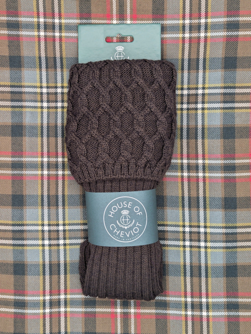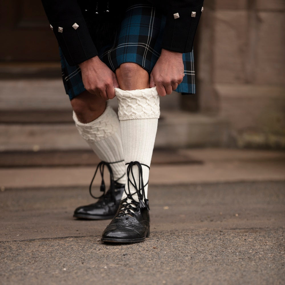 Best Seller. The Lewis style kilt hose features a distinctive Celtic cable knit design in the cuff and is one of our top sellers! It features a classic 4 x 2 rib knit leg, made from a Merino Wool and Acrylic 50/50 blend. The foot area is fully reinforced for added comfort and durability. Machine washable in cold water on the gentle cycle. Do not tumble dry.
