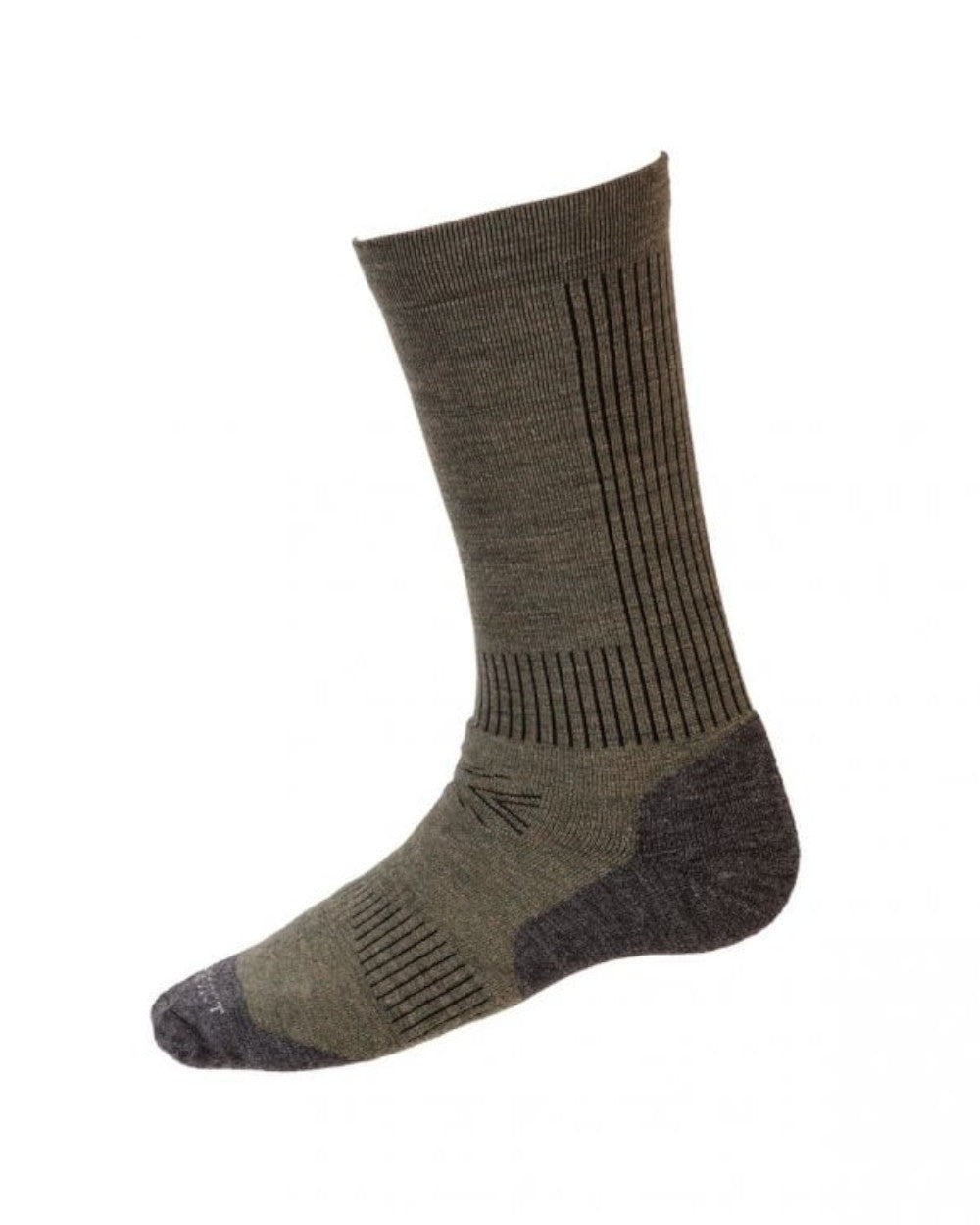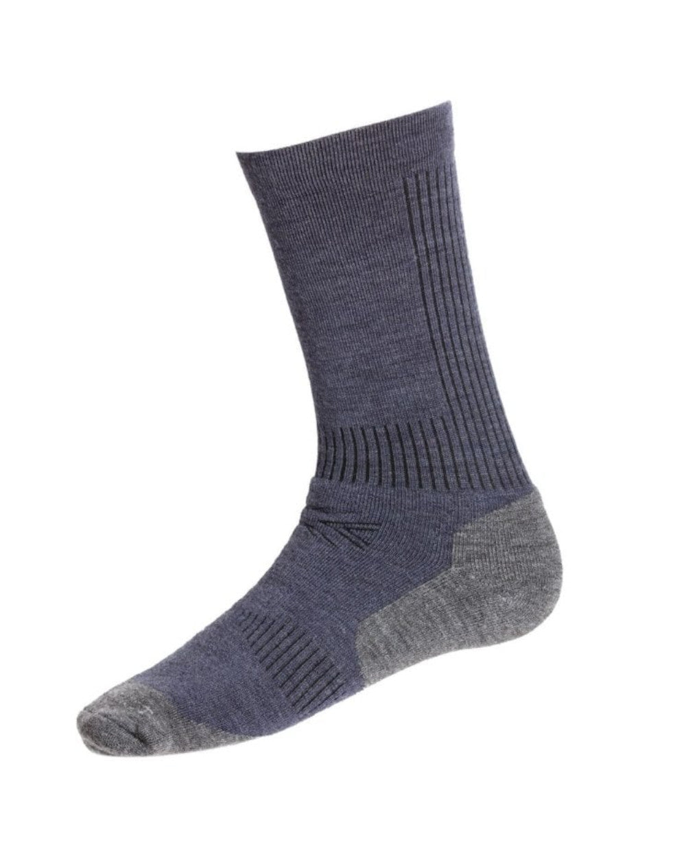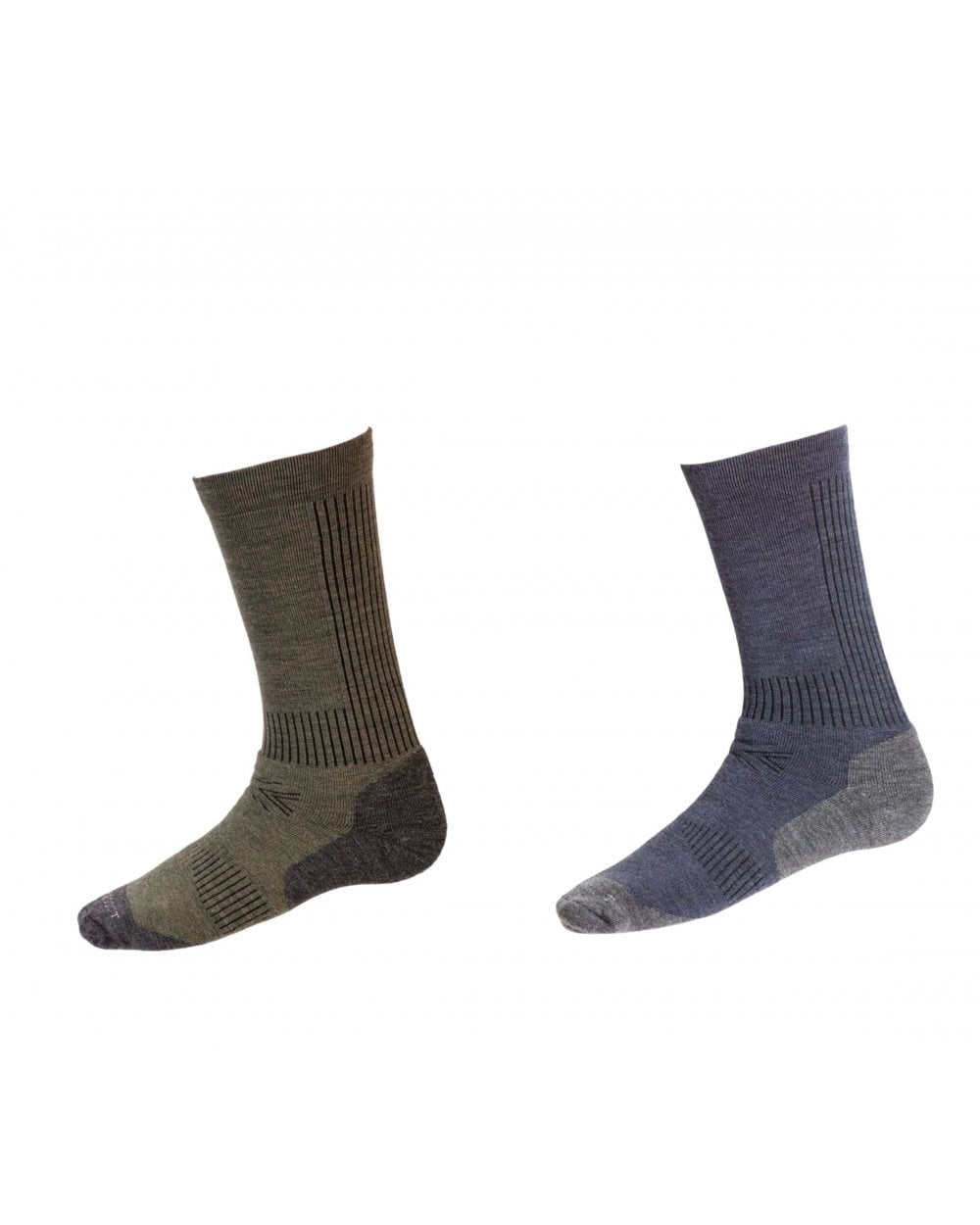 Merino wool performance socks with polyamide and elastane. Knitted in 70% merino wool which provides comfort and durability with moisture wicking and temperature regulating properties. Cushioned foot for additional comfort, the socks also feature a soft fit cuff, ribs for ventilation and additional support at the ankle and instep. Knitted and hand finished in Scotland.