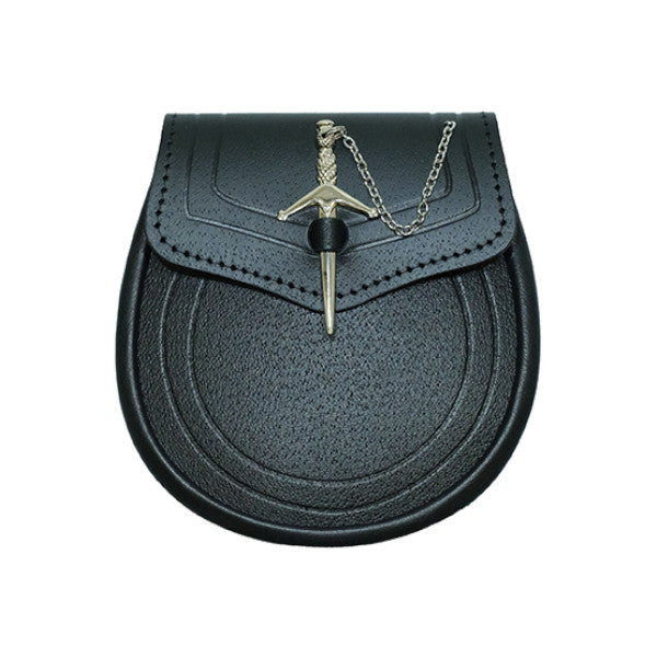 This is a practical embossed Sporran, with Claymore Sword & leather loop clasp, very stylish for everyday use.